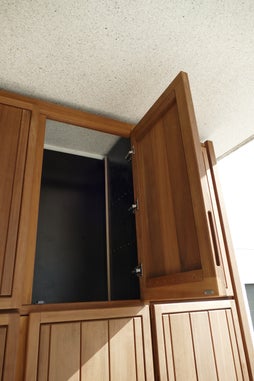 Hiervoor zijn de 2 panelen boven vervangen voor een nieuw lamellenpanneel in de dezelfde houtsoort.